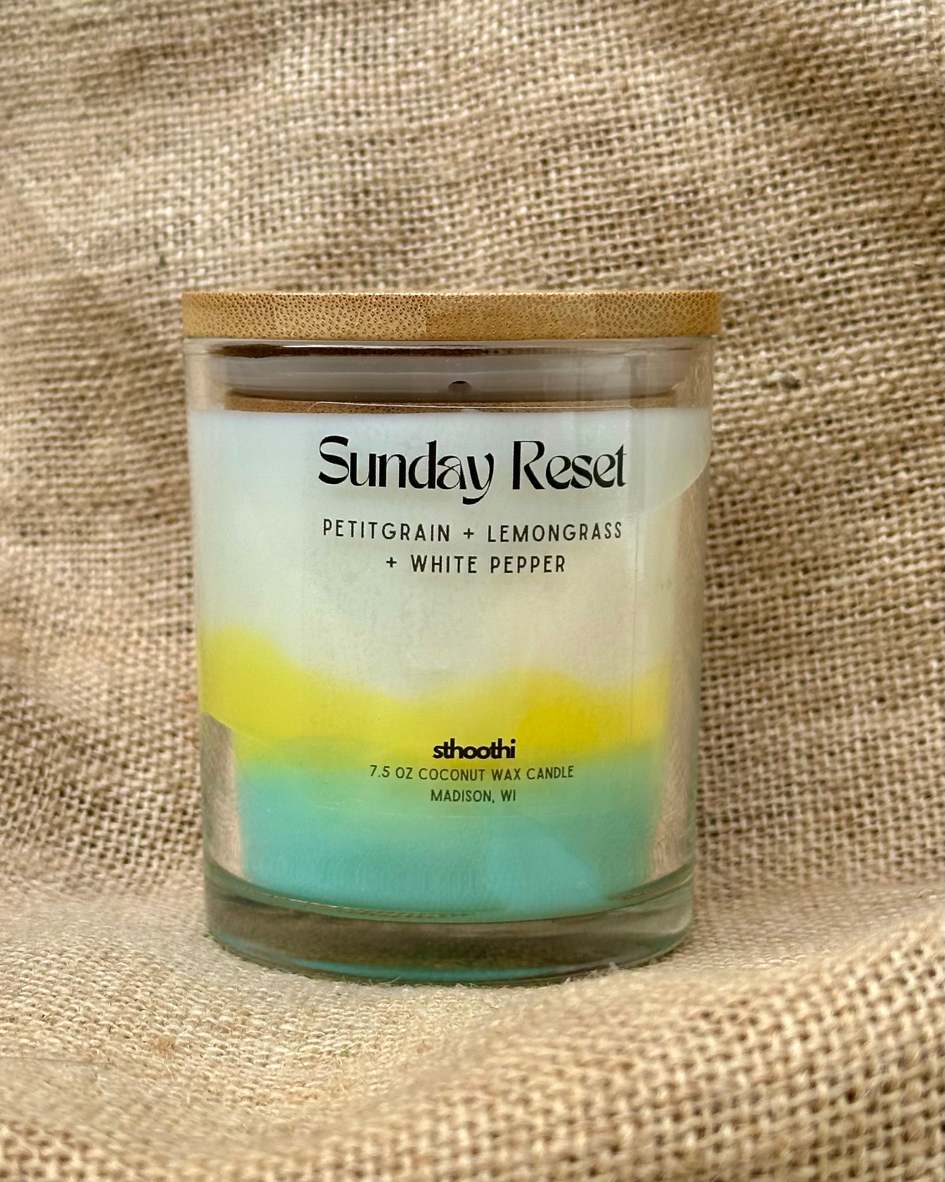 Fresh laundry, clean countertops, spring flowers. Sunday Reset is a fresh, lemony, and crisp scent, with background notes of green tea and lemon zest.